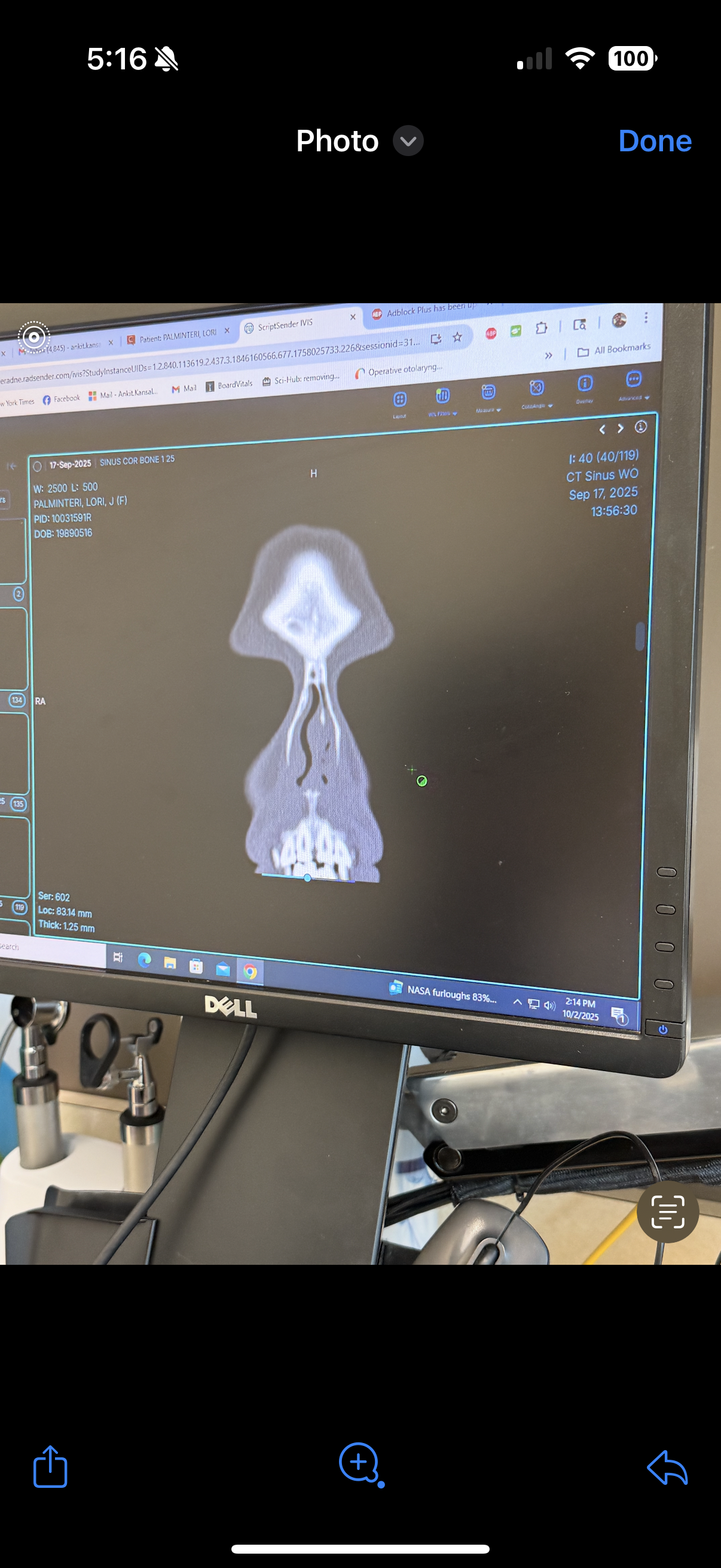 [Above is a screen shot of my nasal cavity. That black squiggle line is supposed to be straight. This is medically considered severely deviated.]