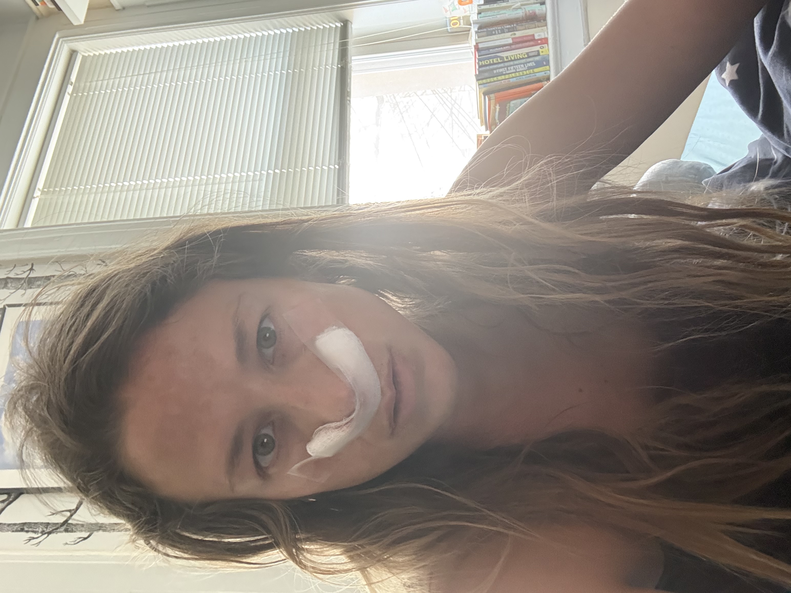 Actually, the first thing I did smell was the tape for the gauze on Friday night. I could smell it so clearly— chemicals. That’s what it smelled liked. Some blood drainage is expected and though hardly enough for alarm, even a little bit of blood makes me feel like I need to sit down. The doctors office called and said my doctor couldn’t see me on Tuesday and wanted to move the follow up appointment (where they’d remove the stents) to Wednesday or Thursday. How about Monday, I suggested, wanting my face unpacked as soon as possible.